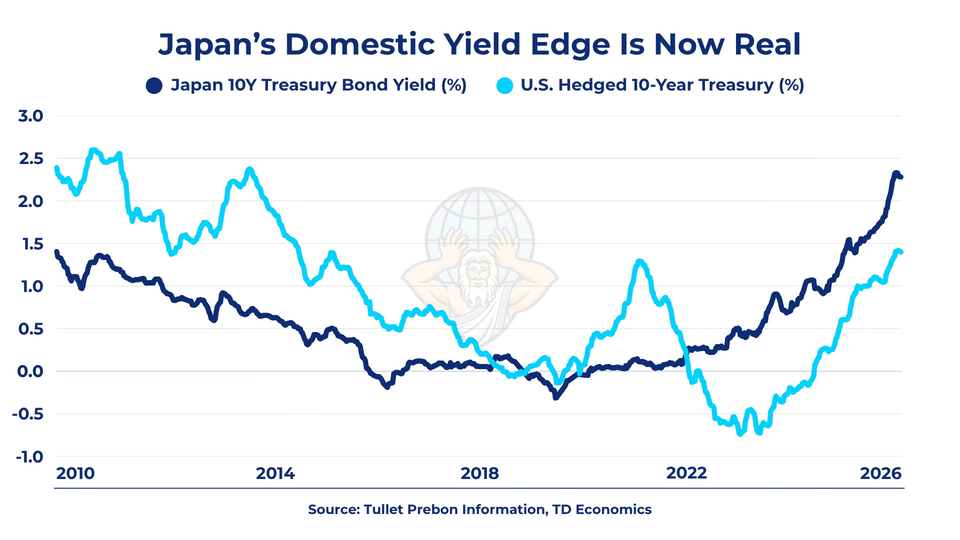 This energy shock is hitting Japan at an especially fragile moment. With the Bank of Japan still leaning toward further tightening, the 10-year JGB yield has risen to roughly 2.4%, near multi-decade highs. At the same time, imported energy costs are feeding inflation and worsening domestic financial conditions. The result is a dangerous shift in incentives: Japanese capital now has more reason to stay home, and less reason to keep underwriting the U.S. Treasury market at the margin.