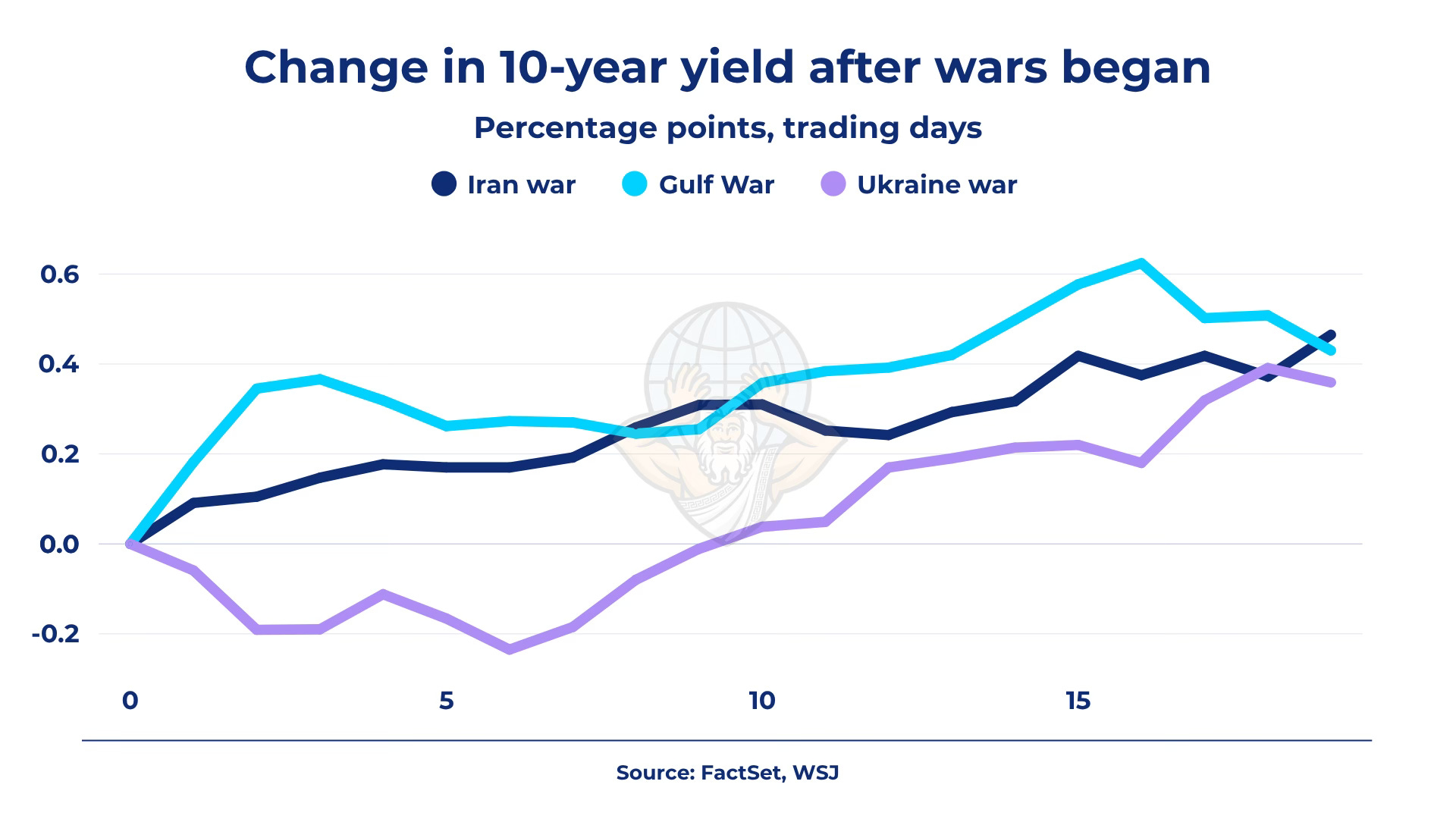The historical comparison is telling. In the early trading sessions after this conflict began, the U.S. 10-year yield has behaved far less like it did after the outbreak of the Ukraine war—where yields initially dipped as investors sought a flight to safety—and far more like the early Gulf War pattern.