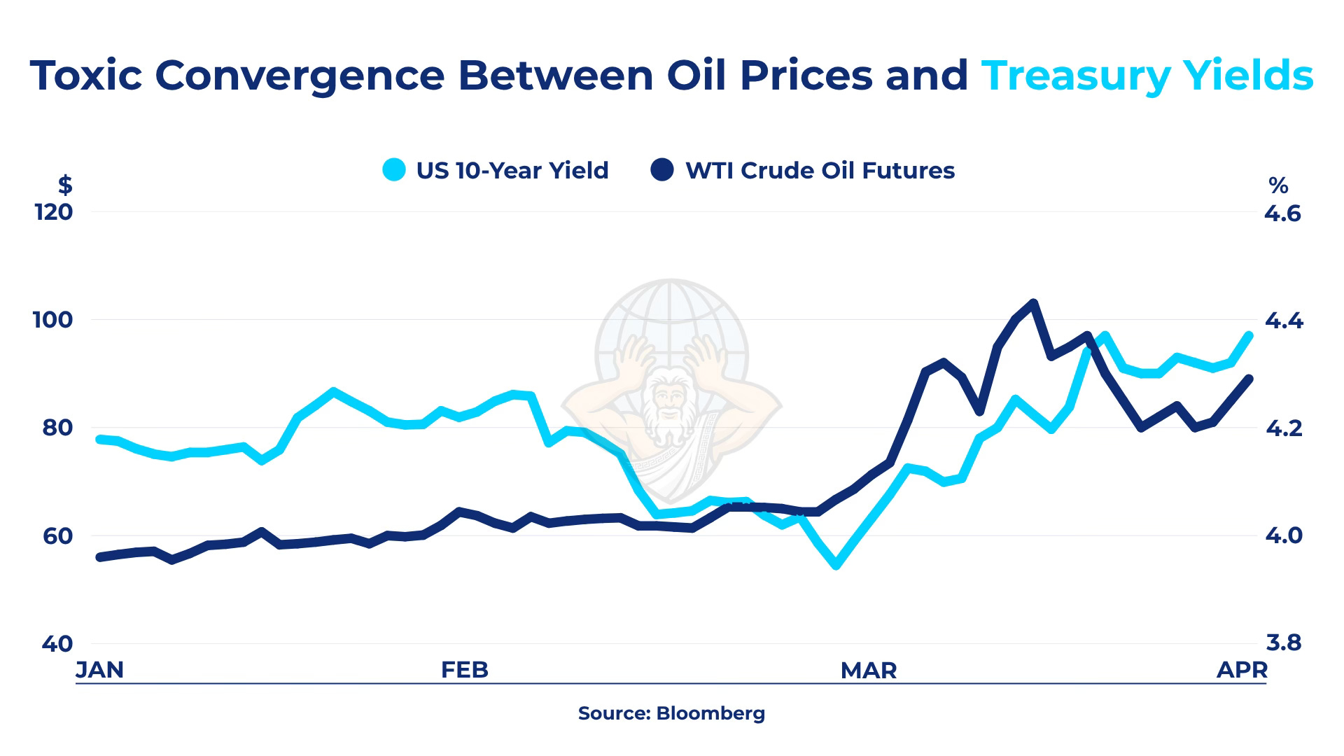 This is the chilling reality Washington is beginning to run into. Political rhetoric often treats war as a test of national resolve. Financial markets treat it as a matter of solvency. The old decoupling between energy prices and bond yields is breaking down. WTI crude and the U.S. 10-year yield are increasingly moving in the same direction, a dangerous signal.