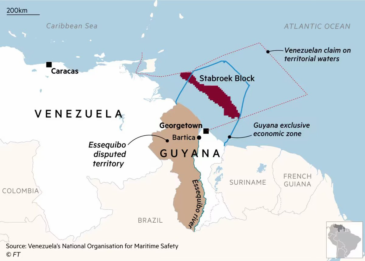 That dispute extends offshore. The Stabroek Block lies within Guyana’s internationally recognized Exclusive Economic Zone, yet close to waters Venezuela has at times claimed, turning a historic land boundary disagreement into a high-stakes contest over adjacent maritime oil reserves.